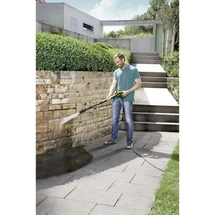 Le nettoyeur haute pression K 4 Power Control Home rend simple le nettoyage de chaque surface avec la pression adaptée. Et grâce à l’application Kärcher Home & Garden, il devient tout aussi facile de trouver la pression adaptée : l’assistant d’application intégré dans l’application fournit à l’utilisateur des conseils pratiques dans toutes les situations de nettoyage et pour tous les objets à nettoyer afin d’obtenir d’excellents résultats de nettoyage. Outre l’assistant d’application, l’application propose d’autres fonctions utiles telles qu’une notice de montage, des consignes de maintenance et d’entretien ainsi que le portail de service Kärcher. Une fois que le niveau de pression adapté a été trouvé, il se règle très facilement par rotation de la lance d’arrosage et peut être vérifié sur le pistolet G 160 Q Power Control. Autre équipements : système de détergent Kärcher Plug ’n’ Clean, poignée télescopique ainsi qu’une position de rangement pour que les accessoires soient à portée de main à tout moment. Le Home Kit garantit un nettoyage sans éclaboussures des surfaces étendues autour de la maison et inclut le nettoyeur de surfaces T 5 et 1 l de détergent pour pierres.