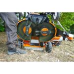 Avantages du produit Robuste; ergonomique; confortable; ramassage variable; éjection arrière ou mulching; grande largeur de coupe; roues frontales pivotantes; traction électriques des roues par variateur