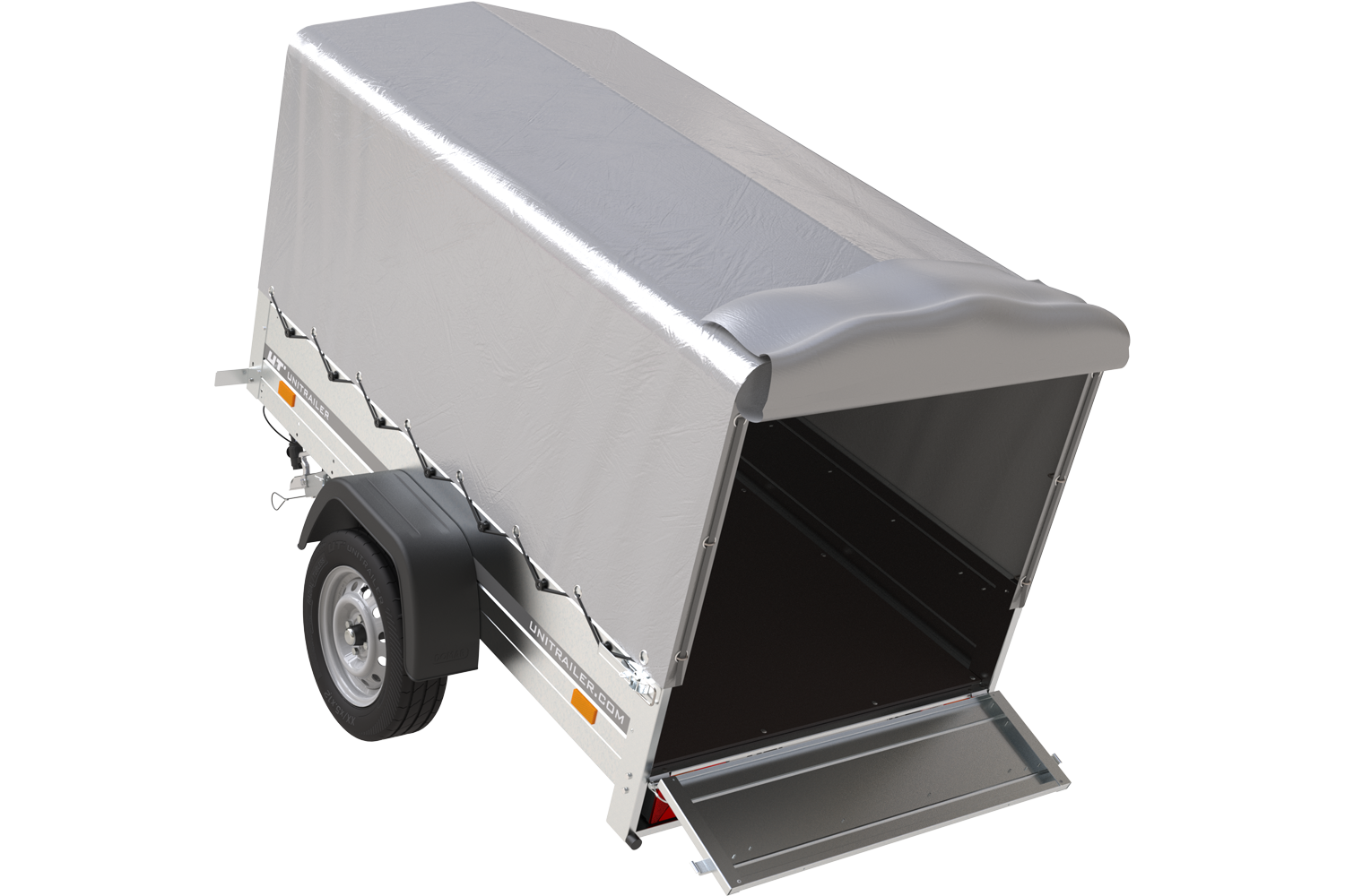 Remorque avec bâche haute et arceau UNITRAILER GARDEN TRAILER 200 KIPP possède un timon rabattable. C’est une remorque solide faite en acier galvanisé. Elle peut être place sur sa ridelle arrière, ce qui permet de la stocker de manière très facile dans le garage ou à côté de la maison. Grace au timon pliable, le déchargement de tous cotés de la remorque des produits en vrac est très facile.