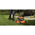 Avec cette tondeuse à essence ; vous obtiendrez facilement d’excellents résultats. Le démarrage se fait sans effort grâce à la fonction de démarrage électrique; tandis que le carter de coupe léger facilite les manœuvres. La lame est optimisée pour le mulching; ce qui transforme l’herbe coupée en engrais naturel. La poignée se replie pour faciliter le rangement et le transport.